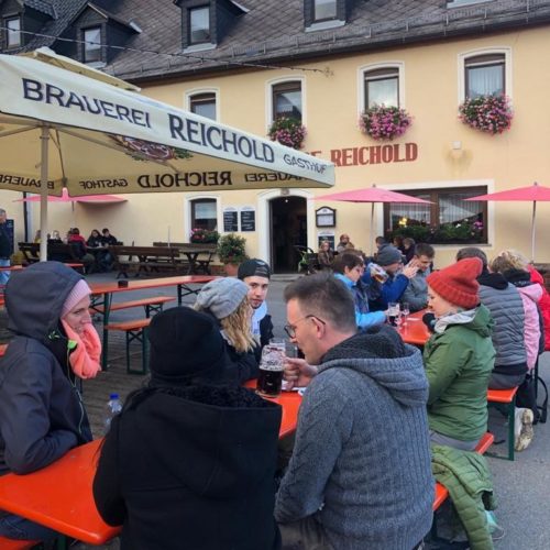 In Hochstahl angekommen genehmigten wir uns Bier von der Brauerei Reichold, tranken Kaffee und genossen frische Küchle.